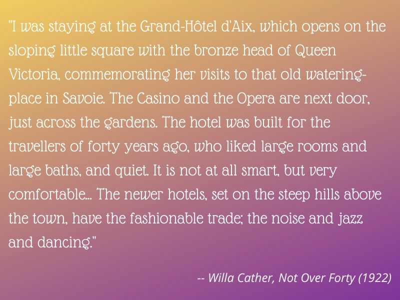 While some visitors rented apartments or maintained residences in Aix – as did Queen Victoria – many preferred to keep rooms at one of the luxury hotels.