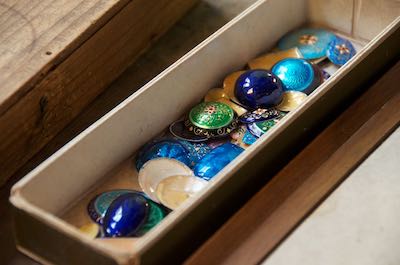 This is the last workshop of its kind, yet 100 years ago the town had 10 or 20. But tastes changed, people traveled more and bought things overseas, and cheaper foreign enamels with brighly colored resins appeared on the market, undercutting local craft.