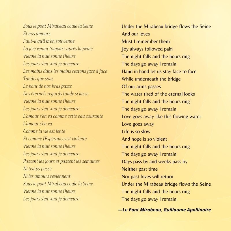 Bridges Across the Seine, by Vincent Van Gogh, one of thousands of paintings of this inimitable riverLike paintings, many poems have been written about the Seine. The most famous is perhaps Le Pont Mirabeau by Guillaume Apollinaire, the avant-garde 20th-century poet.