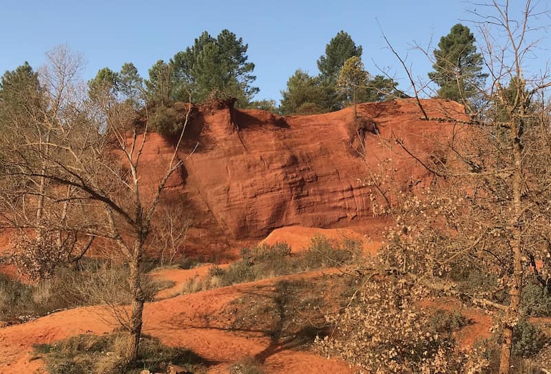 The ochre cliffs of the Colorado Provençal near Rustrel - a perfect way to see the natural beauty of Provence and stay out of the way of the virusBut when it's miserable − cold, for example, or windy with heavy rain, as it was the Monday after I arrived − then the constraints hit home.